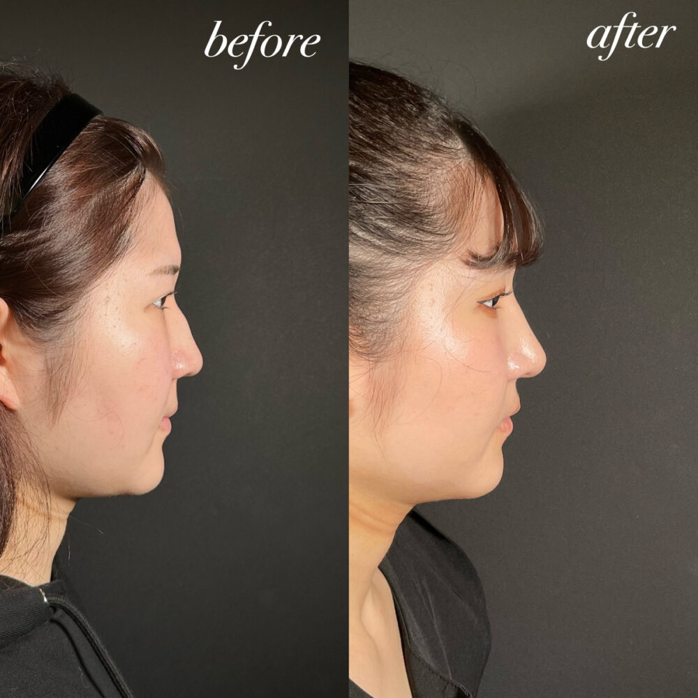 この患者様は忘れ鼻をご希望でしたので、横から見ても自然なお鼻に見えるよう施術をさせていただきました。
