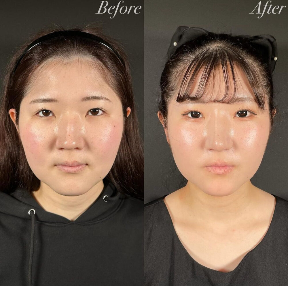 正面から見ると、鼻が前方向に高くなったため、ほうれい線や貴族部の凹みが改善されたのが分かると思います。