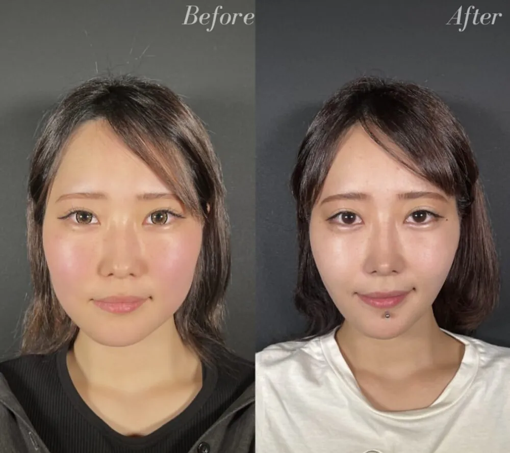 余白の少ないシャープな逆三角形のお顔になるので、男女ともに人気のある施術です。