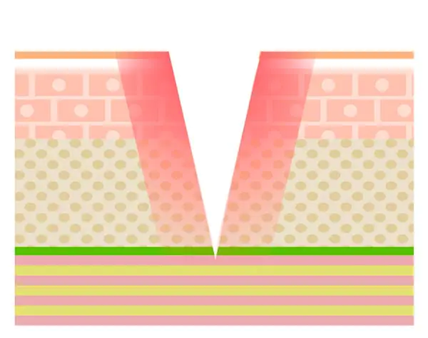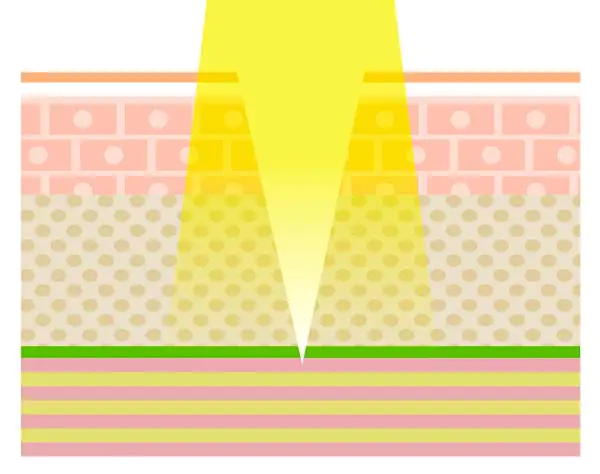 これまで外科手術でしか解消できなかったSMAS(筋膜)と呼ばれる皮膚の土台の たるみ治療が、メスを使わずに治療を行うことが可能になりました。術後は創傷治癒過程におけるコラーゲン産生によって皮膚の内部からのリフトアップ効果が期待できます。