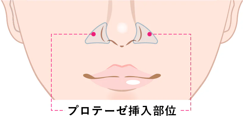 この部位にプロテーゼを挿入すると、中顔面全体が前方方向へ前進し、中顔面に立体感を出します。この手術は立体的で上品な印象のお顔立ちになることから通称「貴族手術」とも呼ばれており、近年大変人気となっている施術の一つになります。